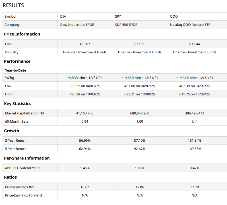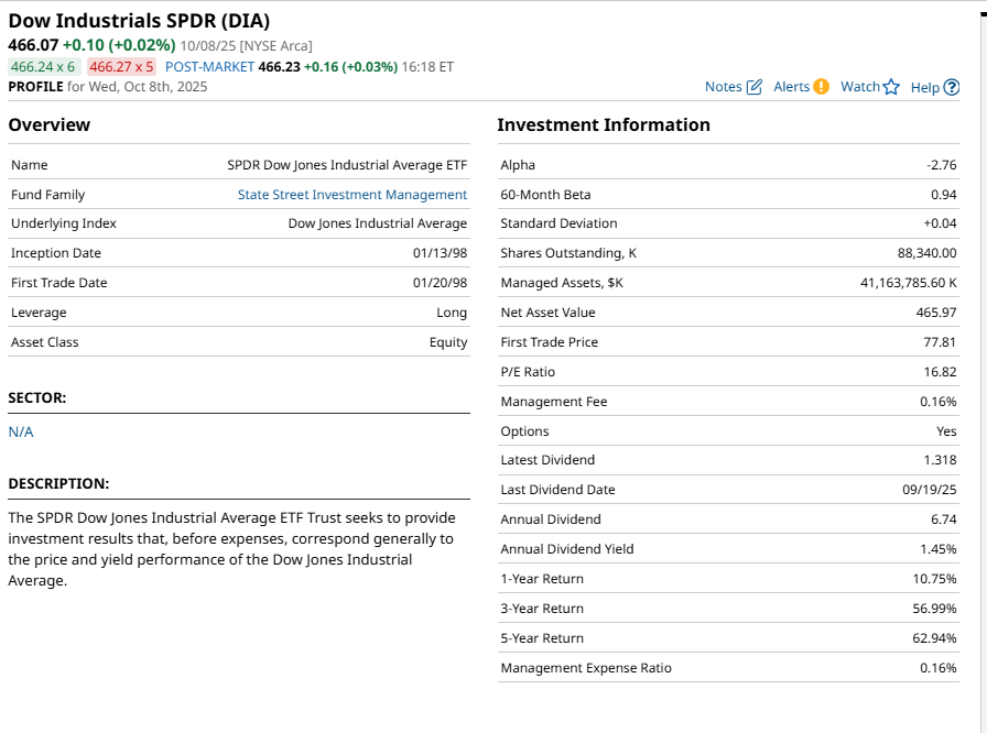 The Dow is best represented in ETF form by the SPDR Dow Jones Industrials ETF (DIA). State Street Investment Management runs it, and they made a great decision back in 1998, when five years after the first-ever ETF was launched to track the S&P 500 (SPY), they debuted DIA. It is a $41 billion ETF now. And it tracks the 30 stocks in the index that was created back in the 1800s, and which served as the home of the great stocks that were part of the U.S. industrial revolution. Not to mention the big business that helped the free world stay that way in World War II.