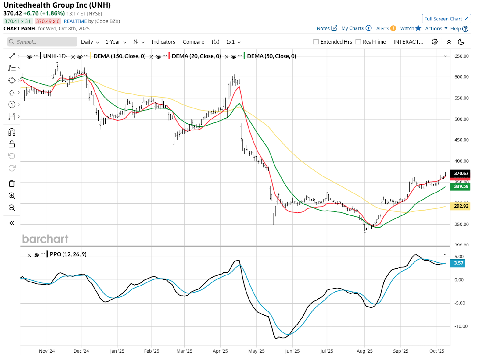 United Healthcare (UNH) is by far the most intriguing of the 3. I put this one last, however, because there’s so much fundamental and narrative “noise” around the name, it could overtake the positive pattern I see building. That followed a historic loss for the stock earlier this year.