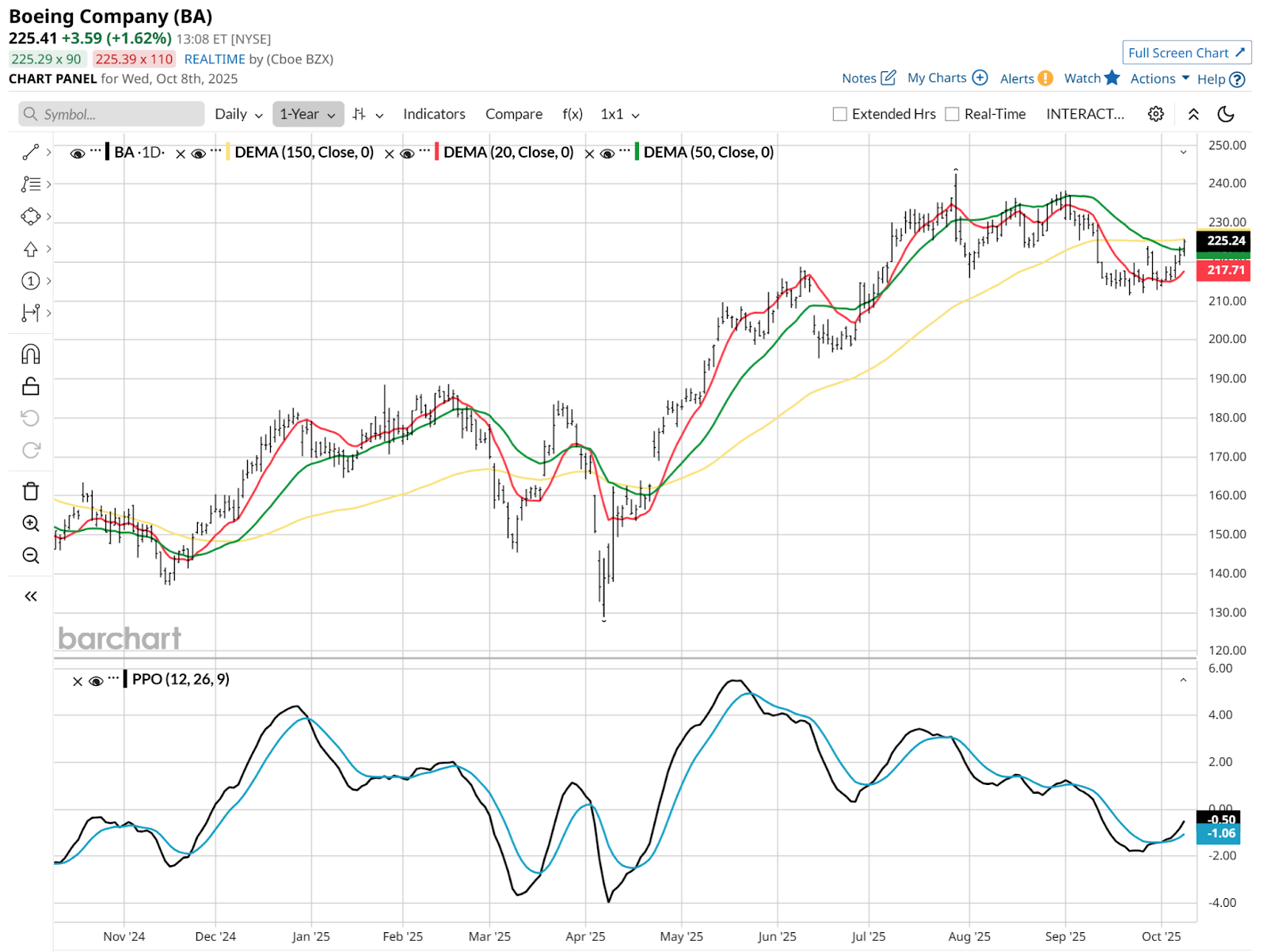 Boeing (BA) appears to be trying to bust a move higher once again. That 20-day moving average in red is saying there’s a chance. If the 50-day turns up as well, there may be more than a trading move here. A big “if” for now, but this stock looks better than most in the Dow to me. The Percentage Price Oscillator (PPO) at the bottom is still in negative territory, but turning up. I translate that to “if it can keep plugging a bit higher and cross above the 0.00 line with some energy, that could unlock a bigger move.”